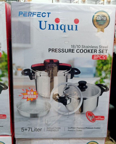زودپز دوقلو یونیک درب کلیپسی مخزن استاندارد 5و7 لیتر مدل Unique استیل درجه یک 18/10 نگیر کف چدن کیفیت عالی