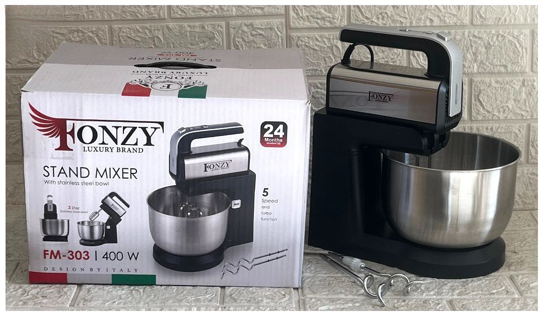 همزن کاسه دار فونزی مدل FM-303 حرفه ای 5سرعته 3 لیتر کاسه چرخشی 400 وات موتور قوری 24 ماه ضمانت شرکتی