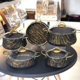 سرویس قابلمه 9پارچه ترک ماربل برند ریوار(Revar)مشکی طلایی