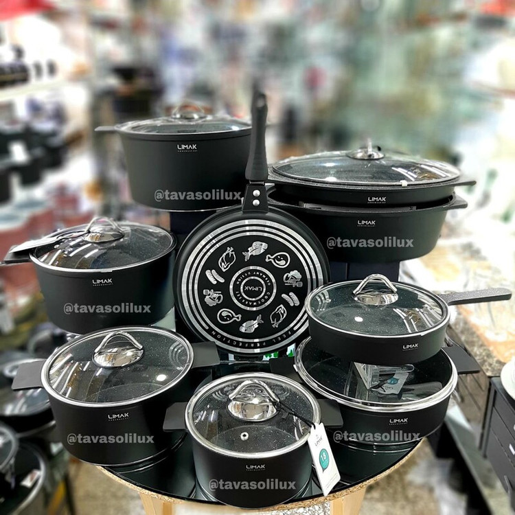 سرویس قابلمه لیماک طراحی آلمانی یکی از جدیدترین، شیک ترین و باکیفیت ترین قابلمه های موجود در بازار می باشد. بدنه این سرویس از چدن مقاوم با پوشش داخلی گرانیت ضدخش با دوسال گارانتی شرکتی می باشد. این قابلمه دارای 17پارچه کاملا کاربردی و مصرفی می باشد که نیاز هر آشپزخانه ای می باشد که برای هر تعداد میهمان مناسب است. در ادامه می توانید ترکیبات سرویس را با جزئیات مشاهده کنید. ترکیبات سرویس : دارای 4قابلمه به سایزهای 30,26,20,18 با درب شیشه ای تابه دودسته سایز 26 با درب شیشه ای تابه تک دسته سایز 22با درب شیشه ای تابه دو طرفه رژیمی سایز 28 تابه مرغ و ماهی