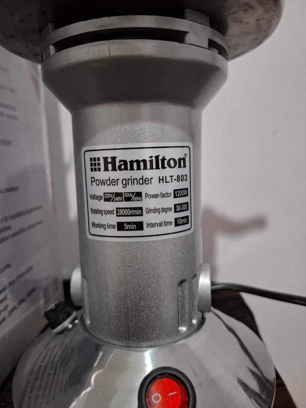 آسیاب صنعتی همیلتون 250گرمی مخزن بزرگ سیم پیچ موتور تمام مس ایتالیایی 1200وات سیم پیچ موتور ایتالیایی تا 1 سال صددرصد ضمانت تعویض
