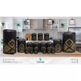 سرویس 17 پارچه فانتزی لیماک گل ماربل شامل سطل پدالی سطل برنج ظرف قند و شکر سرویس 4 پارچه حبوبات سرویس 4 پارچه پاسماوری سرویس ادویه 6 پارچه فلزی