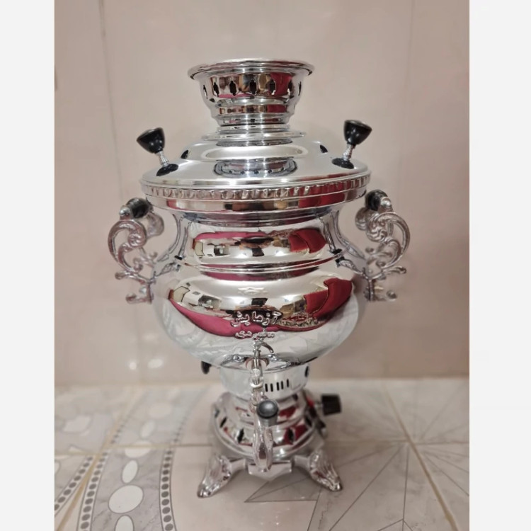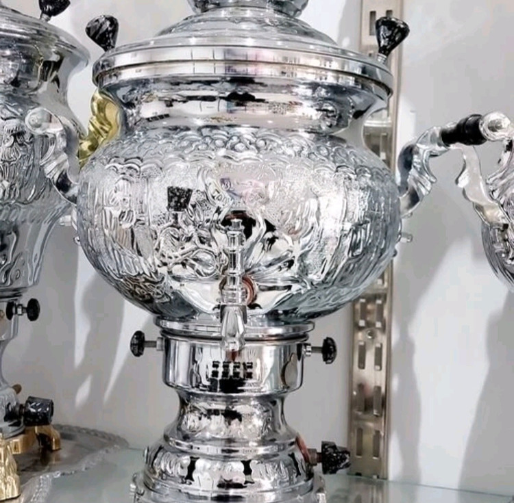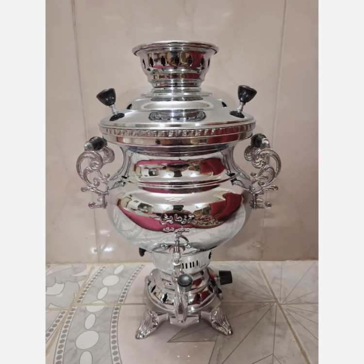 سماور گازی 8 لیتر مهسان با کوره تنوره دار بدنه برنج درجه یک با 1 سال ضمانت (ساده)
