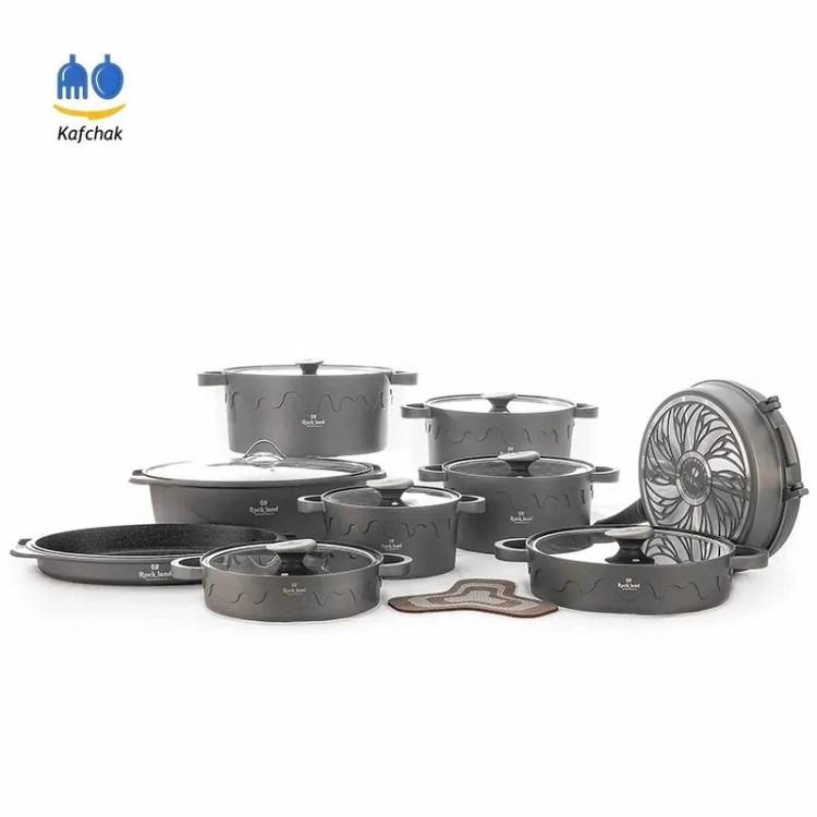 سرویس قابلمه راکلند سری جدید لیانا 21پارچه درجه یک با تابه مرغ و ماهی(طوسی) پس کرایه