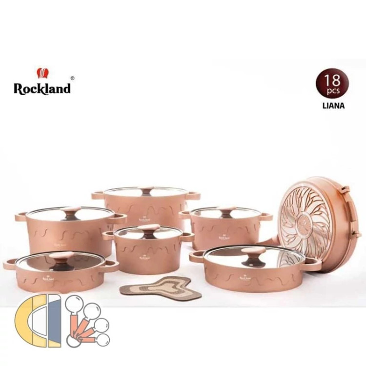 سرویس قابلمه راکلند سری جدید لیانا 18 پارچه درجه یک (رزگلد) پس کرایه