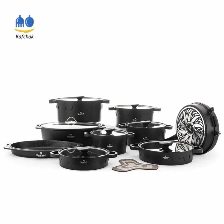 سرویس قابلمه راکلند سری لیانا 21 پارچه درجه یک با تابه مرغ و ماهی(مشکی) پس کرایه