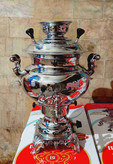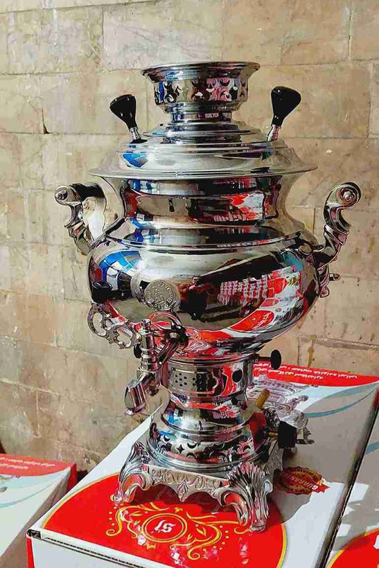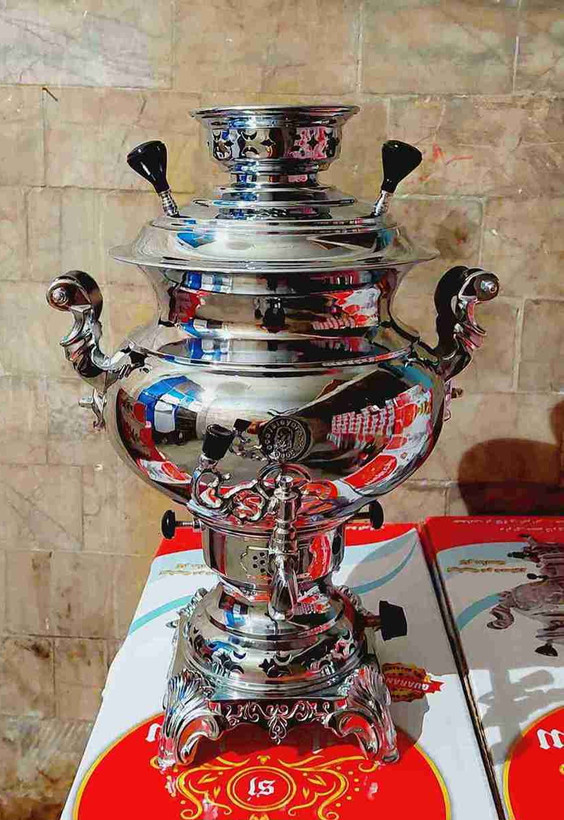 سماور گازی 6 لیتر قالب مهدیس با کوره تنوره دار بدنه برنج درجه یک ورق ضخیم با 1 سال ضمانت (طرح ساده) پس کرایه