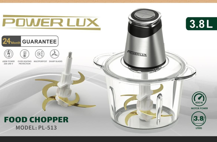 خردکن 3.8 لیتر پاورلوکس 600 وات اصلی سیم پیچ موتور تمام مس و موتور سنگین مجهز به تیغه 6 پر تیتانیومی 24 ماه گارانتی