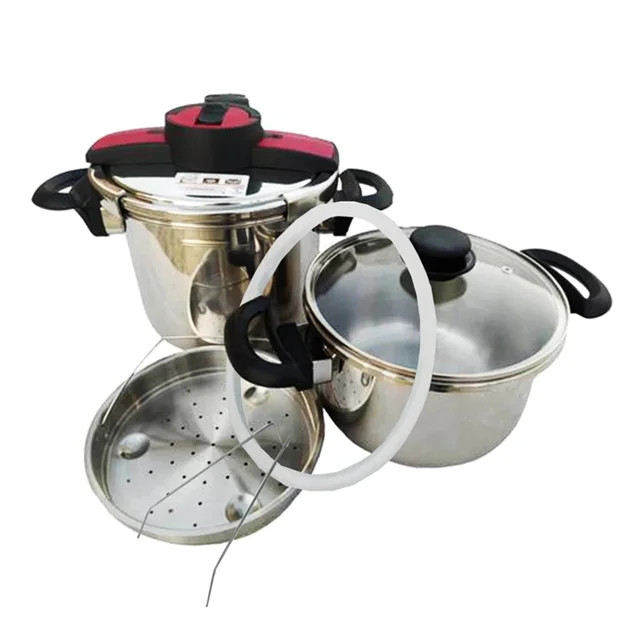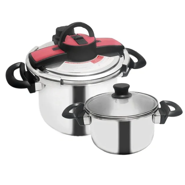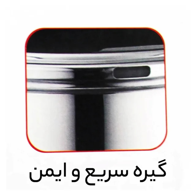 دریچه اطمینان روی درپوش قرار دارد که زمانی که فشار آب به حدی می رسد که ظرف نمی تواند آن را تحمل کند این دریچه باز می شود تا بخار آب از آن خارج شود و این یعنی امنیت بالای زودپز.دستگیره های هر دو قابلمه از جنس باکالیت نسوز می باشد که قابلیت تحمل حرارت تا دمای 700 درجه را دارد.