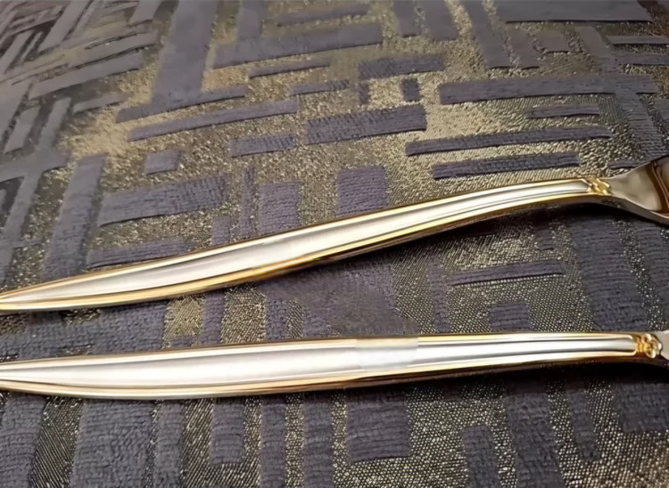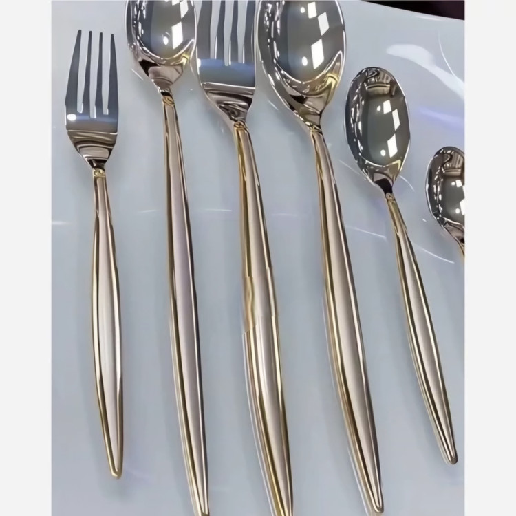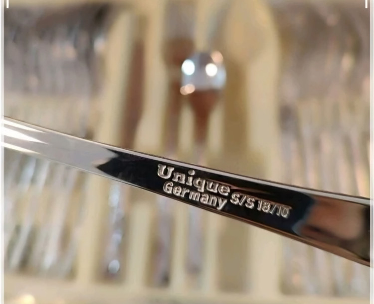 سرویس قاشق چنگال یونیک نیمه طلایی دهانه اروپایی 24 نفره استیل نگیر اصلی حکاکی جرمنی استیل 18/10 120 پارچه