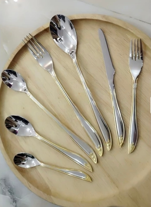 سرویس قاشق چنگال یونیک 24 نفره دهانه اروپایی نیمه طلایی تمام استیل 18/10 اصلی حکاکی جرمنی(فروش ویژه)