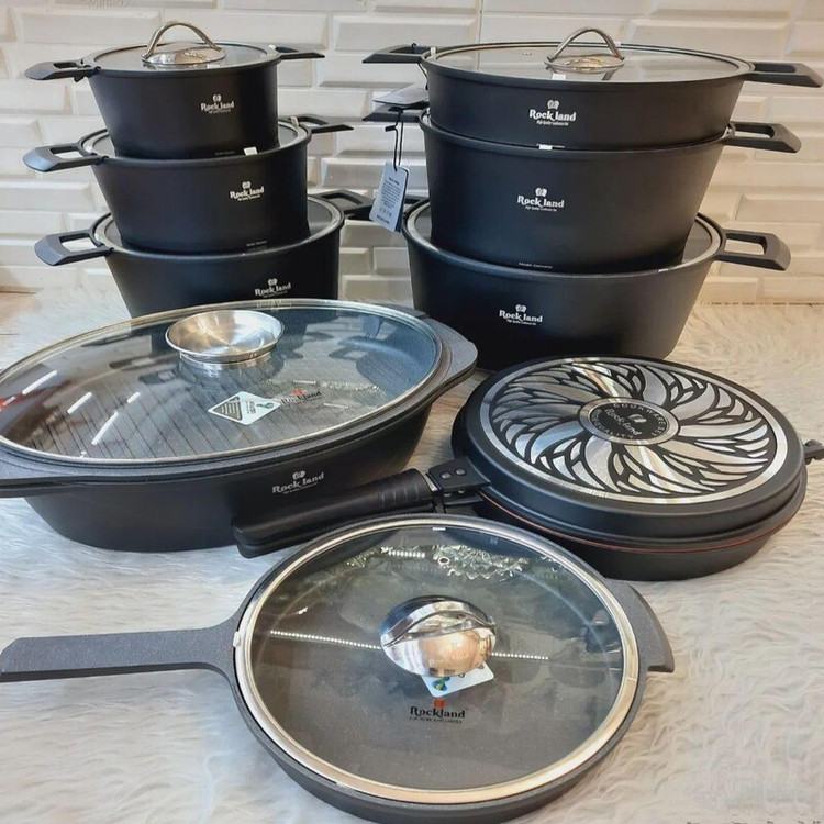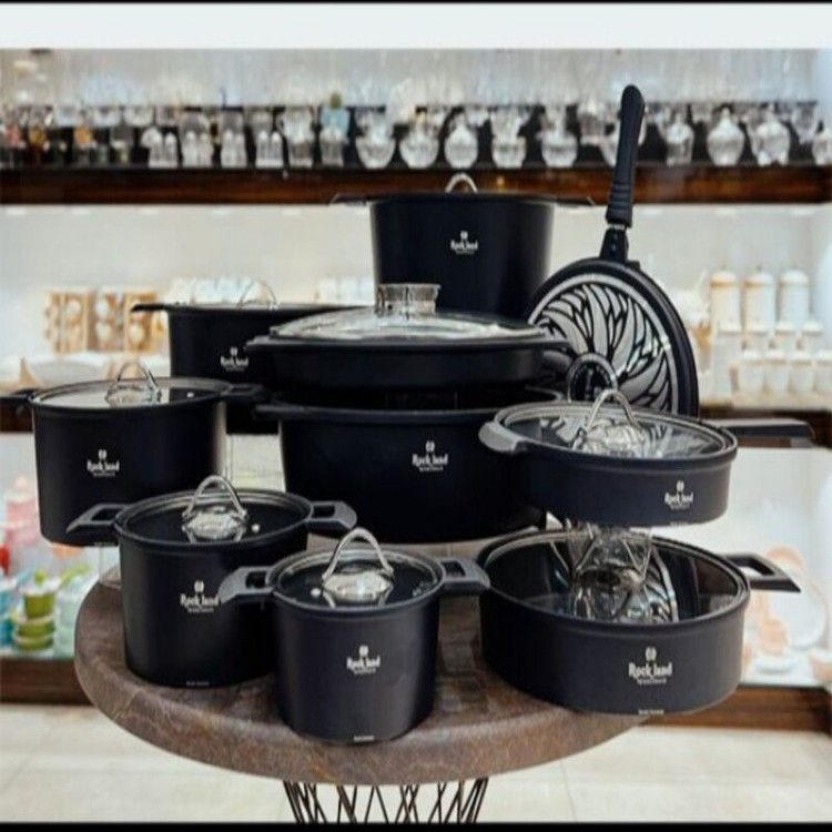 سرویس قابلمه راکلند سری آلمانی درجه یک 19پارچه با تابه مرغ و ماهی(مشکی)پس کرایه