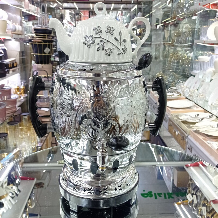 سماور گازی سه کاره 6 لیتر بدنه برنجی شمش با قوری 1 سال ضمانت(بدنه قلم) سماور جلایر،شقایق،اکسور،خورشید و.. موجود