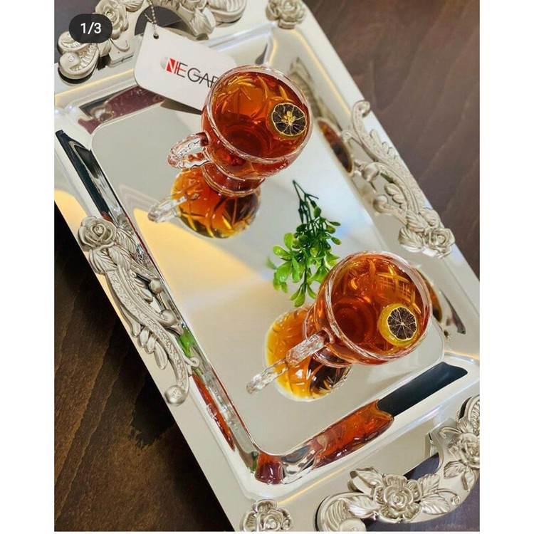 سینی نگار استیل جفت در دو سایز کوچک و بزرگ و طرح های مختلف فوقالعاده زیبا آهن ربا نگیر با ۱۰سال ضمانت یعنی اگر توی این ۱۰سال برای استیلش اتفاقی افتاد برگشت میدین یه جفت سینی تو میگیرین